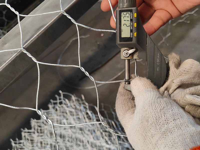 石笼网由高抗腐蚀、高强度、具有延展性的低碳钢丝或者包覆PVC的以上钢丝使用机械编织而成,使用该网制作而成的箱型结构就是石笼网箱。根据ASTM和EN标准,所使用的低碳钢丝直径根据工程设计要求而不同。一般介于2.0-4.0mm之间,石笼网钢丝的抗拉强度不少于38kg/m2,金属镀层重量一般高于245g/m2,石笼网片的边缘线直径一般要大于网线直径。其双线绞合部分的长度不得小于50mm.以保证绞合部分钢丝的金属镀层和PVC镀层不受破坏。