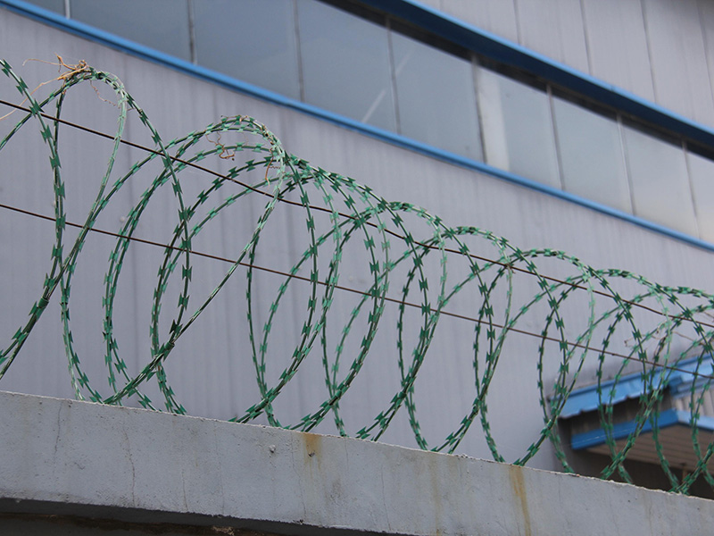 粉末涂料的颜色分为:刀片刺绳蓝色,草绿色,墨绿色,黄色。喷塑刀片刺网由热镀锌钢板或不锈钢薄板冲压出尖锐的刀片状,高张力镀锌钢丝或者不锈钢丝做芯线组合而成的阻绝器材。由于刺绳造形独特不易触摸,因而能达到很好的防护隔离效果。产品的主要材质有镀锌板、不锈钢板、优质的低碳钢丝(电镀锌,热镀锌,涂塑,喷塑)丝,有蓝、绿、黄等颜色。