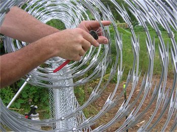 喷塑刀片刺网按照安装方法不同可分为:(蛇腹式) 螺旋式喷塑刀片刺网,直线型喷塑刀片刺网,平板式喷塑刀片刺网,喷塑刀片刺绳焊接网等。