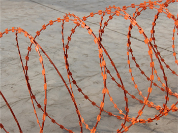 喷塑刀片绳:喷塑刀片刺网(pvc刀片刺网、涂塑刀片刺网)又叫做喷塑刀片刺绳、喷塑刀片刺丝是刀片刺绳生产出来以后,要进行防锈处理所产生的。喷塑表面处理使其具有相当好的防腐能力,表面光泽美观、防水效果好、施工便利,经济实用等优异特点。 喷塑刀片刺绳是将塑料粉末喷涂在成品刀片刺绳上的一种表面处理方法。